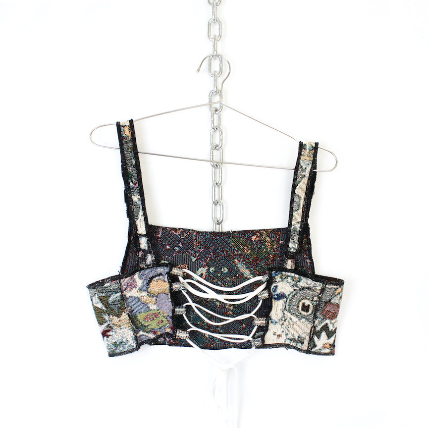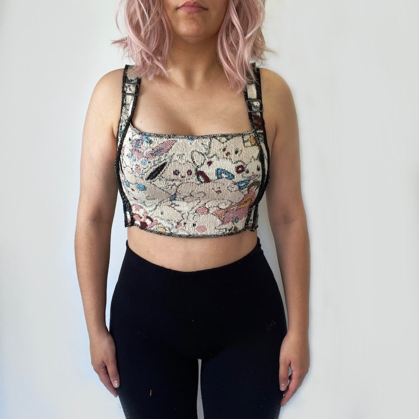 Please note crop tops are adjustable. The lace up can be tightened to be made smaller and loosened to be made larger! Fits sizes Medium to size Large depending on how loose/tight you make the back lace :)