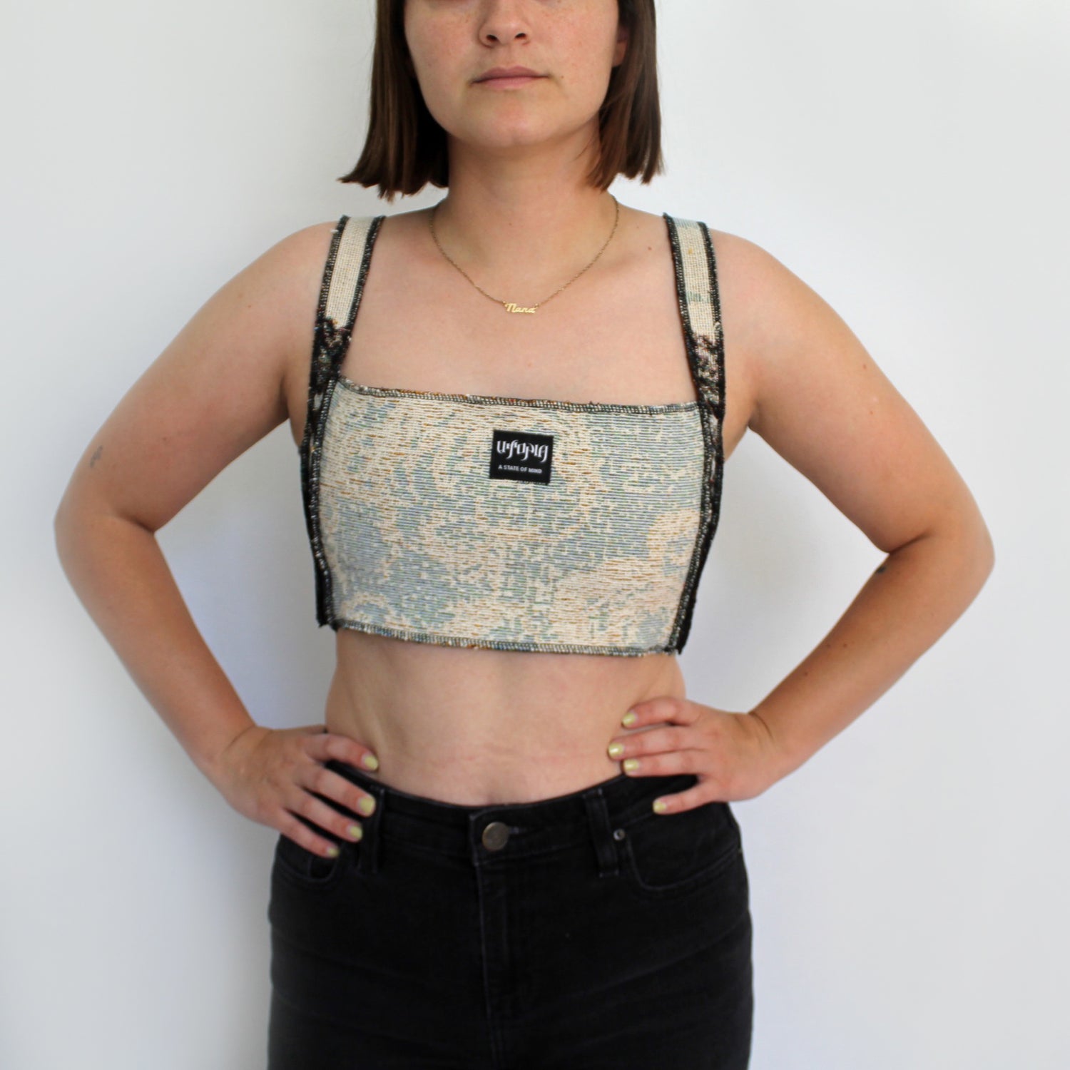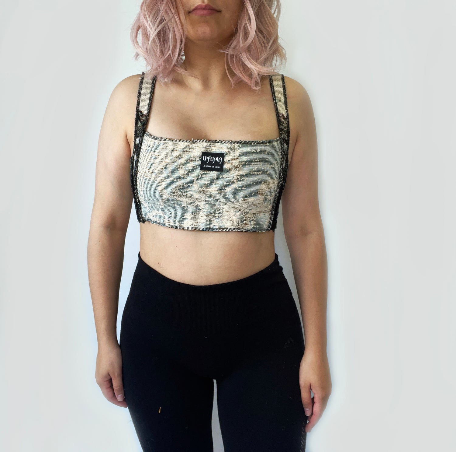 Please note crop tops are adjustable. The lace up can be tightened to be made smaller and loosened to be made larger! Fits sizes small to size medium depending on how loose/tight you make the back lace :)